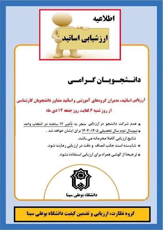 اطلاعیه ارزشیابی اساتید - دانشگاه بوعلی سینا همدان